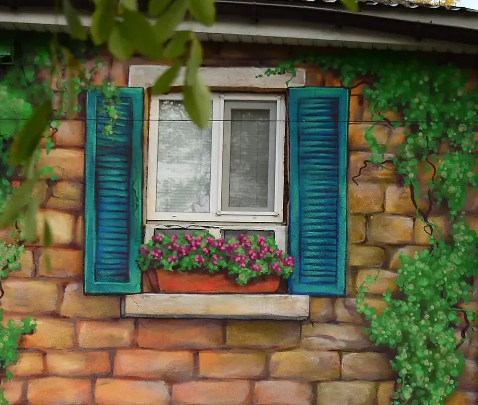 Тут окно двигали, шов вон видно по кладке, изначально все хорошо было ))
