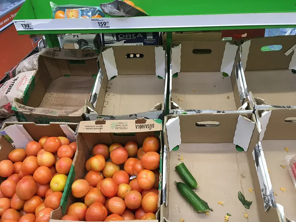 Магазин Пятерочка, сегодня вечером.....я даже представить боюсь какая битва развернулась за последний огурец, что бедолагу разорвали пополам и в итоге бросили, так не доставайся же ты никому)))))