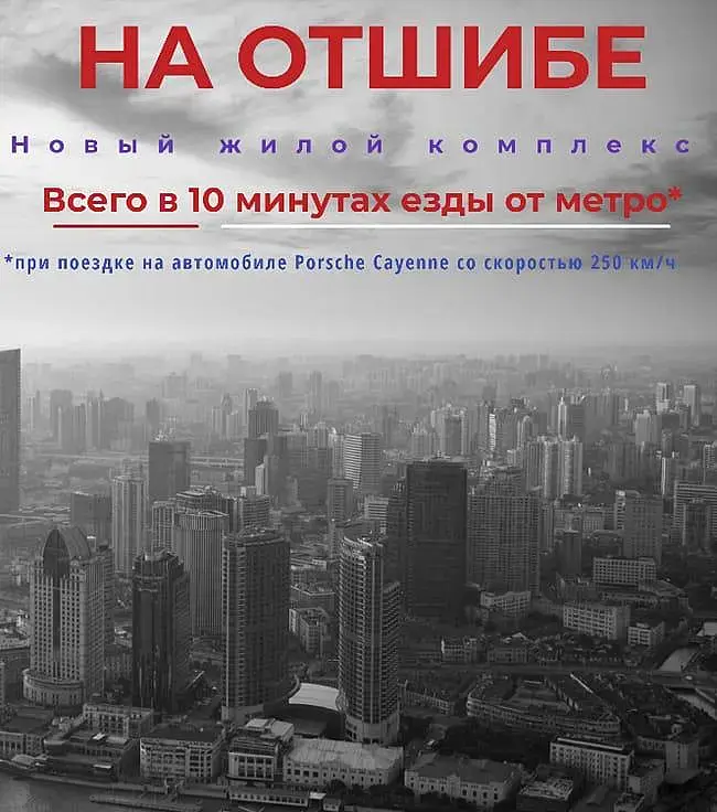 kokoasfalt, была реальная реклама на Рублевке в Барвихе (Подмосковье) о продаже недвижимости, дословно не помню, но типа, купите дом в трех светофорах от Кремля - и это было реально правда, там примерно 26 км, но в было всего три светофора))