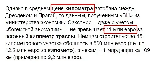 В пересчёте на рубли километр их трассы стоит 880млн рублей, примерно как и наша трасса. Толи они переплачивают, толи мы дешевим...