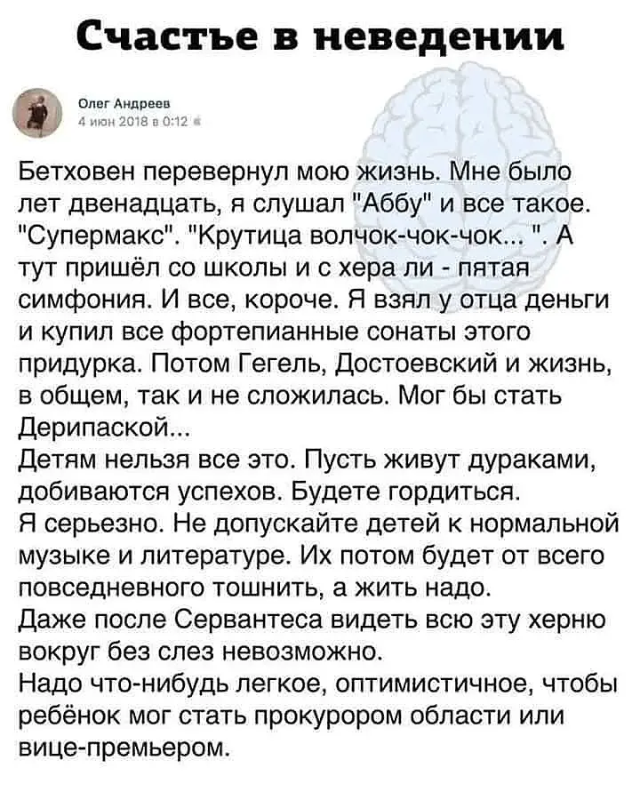 Это на вечеринке, когда основная масса обсуждает новый выпуск "Реальных пацанов", а ты такой с кем то споришь о роли Тео в жизни своего безумного брата Винсента или о Босхе, то да, там возможно самооценочка эрегирует. Но когда тебе приходится быть наёмным у дяди, который жестит, то это вообще не круто.