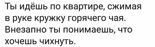 Если вы не однорукий, то пальцами свободной руки сжимаете нос и задерживаете дыхание. Результат - вы спокойно продолжаете нести свою кружку чая и окружающие вас люди, уже готовые про себя проклясть вас за несдержанность, так и не пожелают вам здоровья.