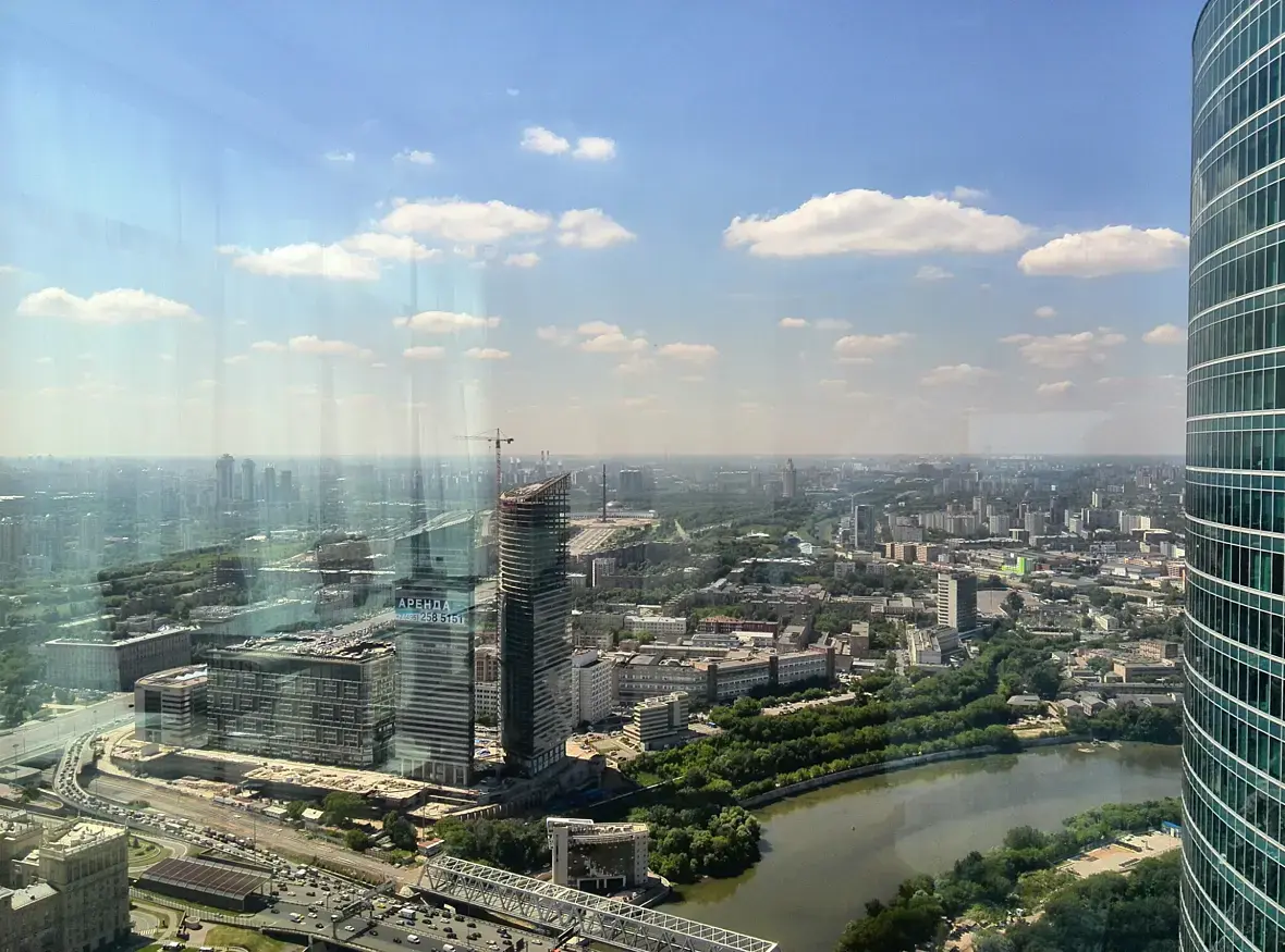 Вид из окон только достаточно интересный, особенно пятна грязи в Москва-реке, которые под другим ракурсом не так заметны (58 этаж):