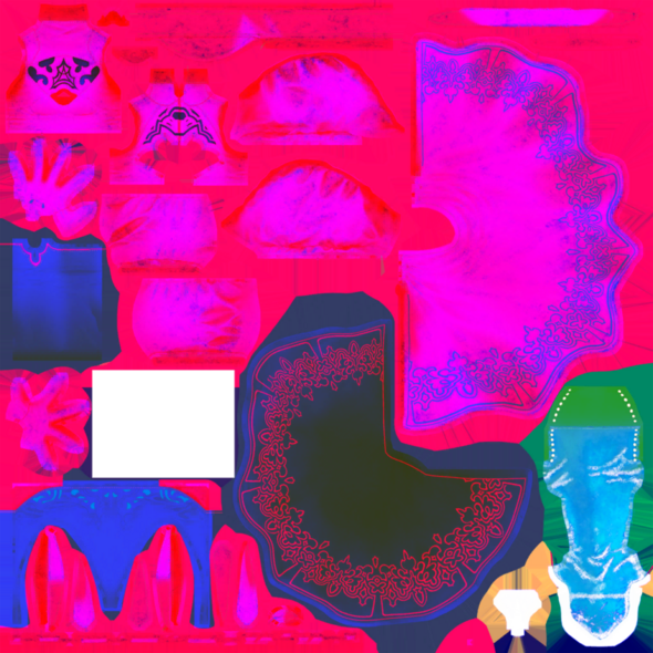 Мне бы ещё понять что делать с красной картой, какой эффект она даёт. В игре персонажи иногда намокали, но та карта не похожа на эффект воды. Во всех каналах изображение на первый взгляд похожее, но немного отличается. Вот оригинал