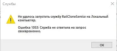 попробуйте вручную запустить экзешник RailCloneServer - по идее должен ругнуться и сказать чего не хватает.