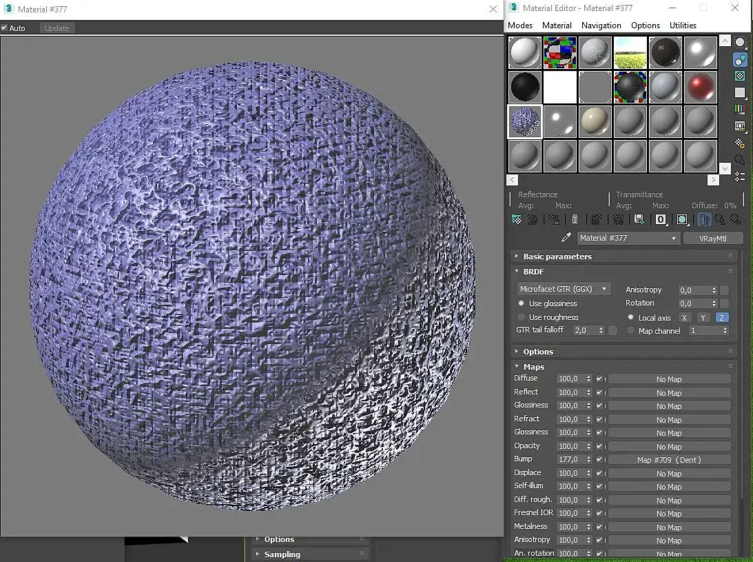 Добрый вечер, подскажите почему не отображается текстура bump если она в виде обычной jpeg картинки (см. рисунок 1) при этом если подгрузить стандартную карту Dent например, то все ок (рисунок 2)