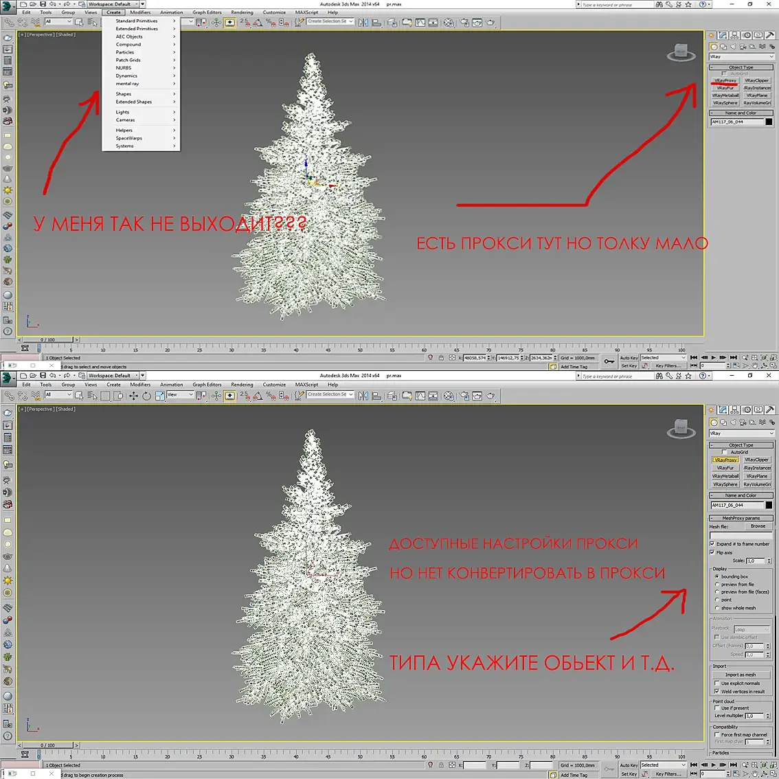 после версии v ray 3.0 установки у меня при правом клике нет в окошке варианта перевести в прокси. ( v ray mesh и т.д.) а на панели с лева прокси (или в командной вкладке вкладка настроек прокси) открывается но где и как указать что я в прокси перевести хочу не выходит. только загрузить прокси. как быть???????