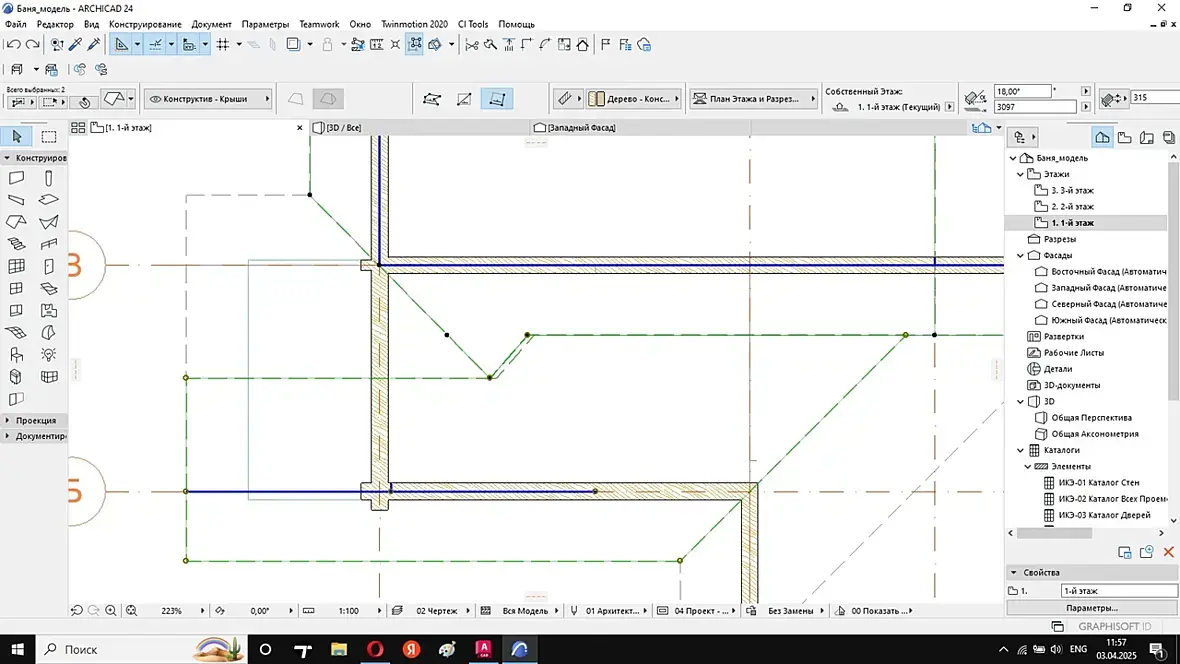 Здравствуйте!Помогите, пожалуйста, решить проблему - не совпадают части крыши из отдельных элементов.У всех деталей выставлена единая высота и угол. Что не так?