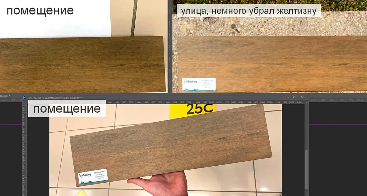Нус, тогда езжайте в салон , смотрите своими глазами. Или просите фоткать с какими то другими объектами рядом. Другими деревяшками, тканями, образцами RAL pantone и т.п.