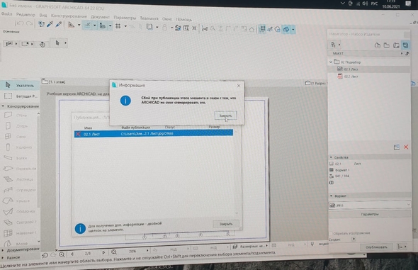 Уже пару дней бьюсь над задачкой. Прислали модель в архикад 22, настроенную, вычерченную. Однако при публикации в пдф, в папке, указанной в параметрах, ничего не сохраняется (хотя архикад пишет, что все успешно сохранено), но в папке пусто. При сохранении в JPEG, DWG, - похожая история. Только архиад говорит что не может сгенерировать что то. Помогите пожалуйста!