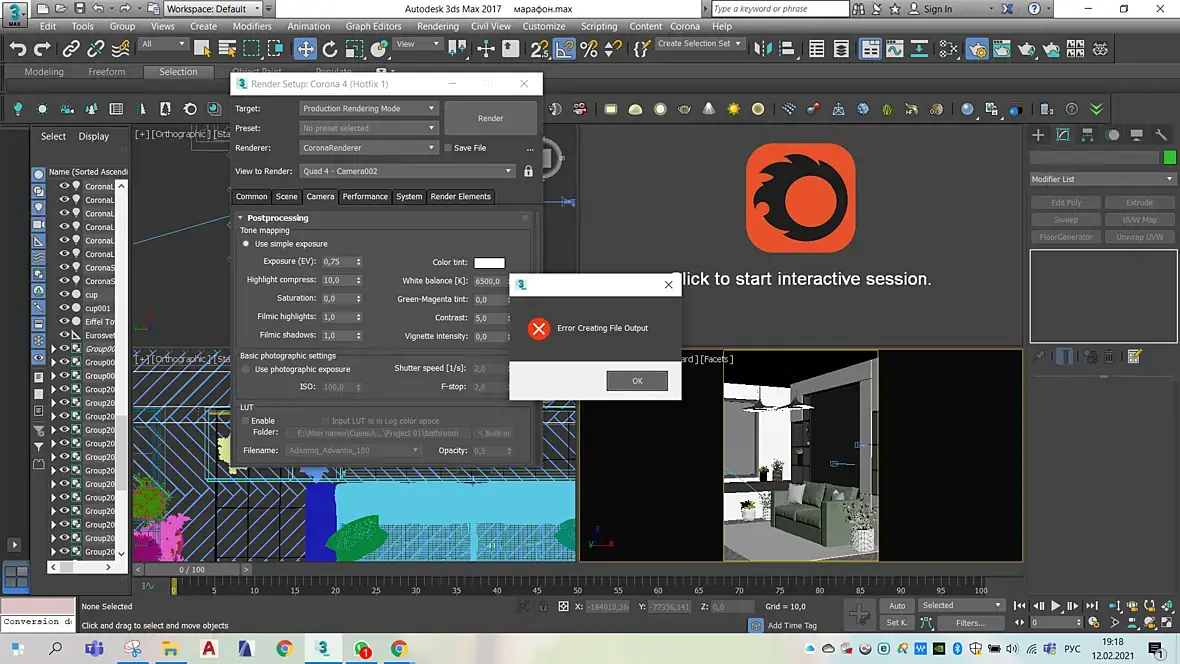Коллеги, помогите. Не понимаю почему не начинается рендер. Нажимаю кнопку F9, Как будто начинается просчет, а потом просто черный экран. Все это буквально 1 секунда. Даже процесса просчета не начинается. Установила себе 3ds max 24 и корону 12. Возможно дело в самой короне. Все что выше написано, все исправлено