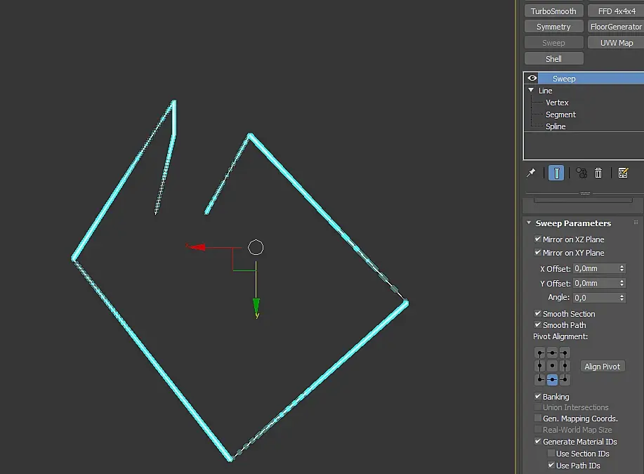 можно ещё попробовать сделать reset XForm сплайну и только потом назначить свип
