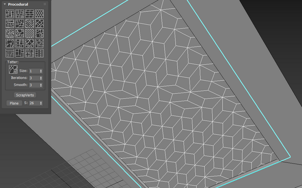 начальная геометрия на первом фото. применил к плейну, предварительно детачнув его из потолка, модификатор quadify mesh
