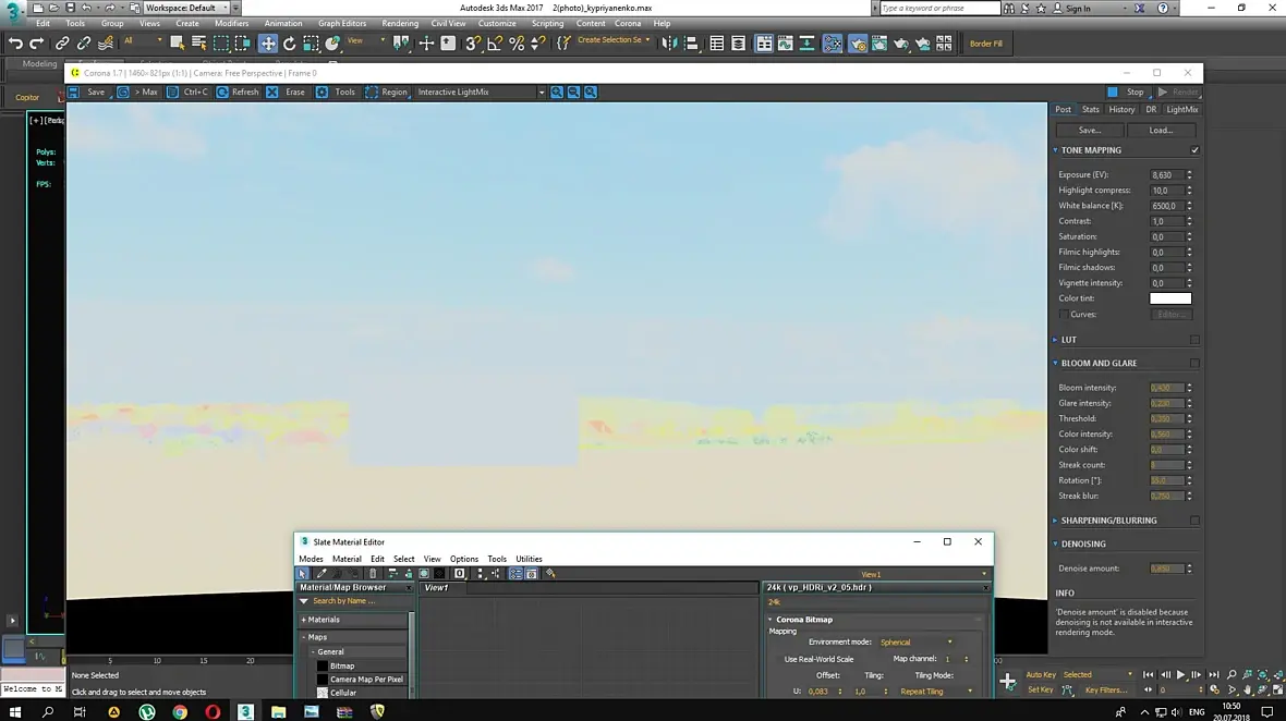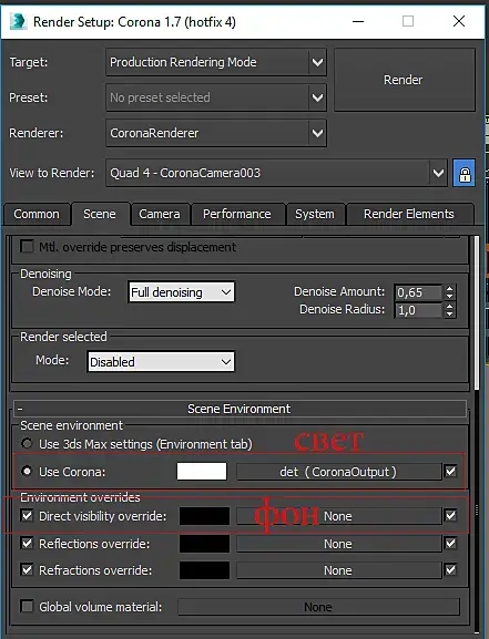Я вас не до понял, думал в фотошопе фон хотели композить, тогда нужно делать маски, конечно проще прямо в максе сделать бекплейт. вот пример создания материала для фоновой плашки. Если фон близко к окну расположен то нужно в свойствах снять галку, чтобы не отбрасывал тени(не перекрывал свет от хдрки)