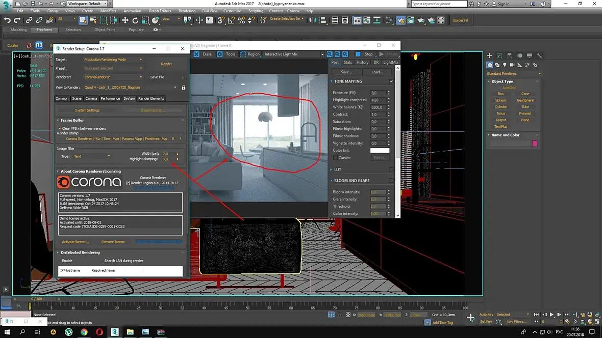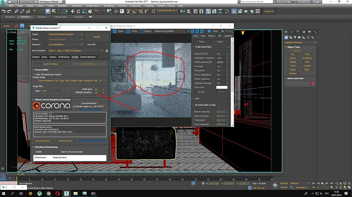 хайлайт клампинг надо крутить только, чтобы убрать лесенку с источника света(которого у вас нет или не попадает прямо в камеру) причем аккуратно потому что на выходе уже будет не 32битная картинка и для пост обработке не годная.