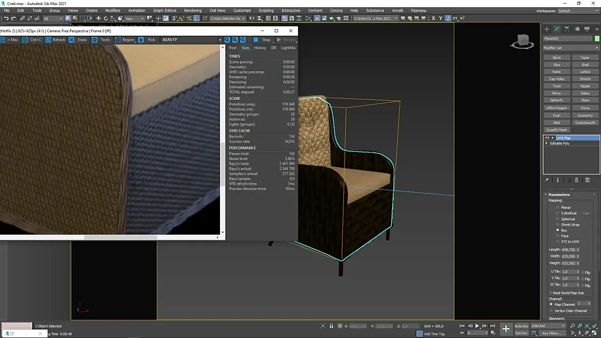 СПАСИБО!!!Проблема была в CoronaTriplanar, накинул увидев на каком то и туторов где накидывают его "чтобы не делать развертку"