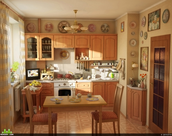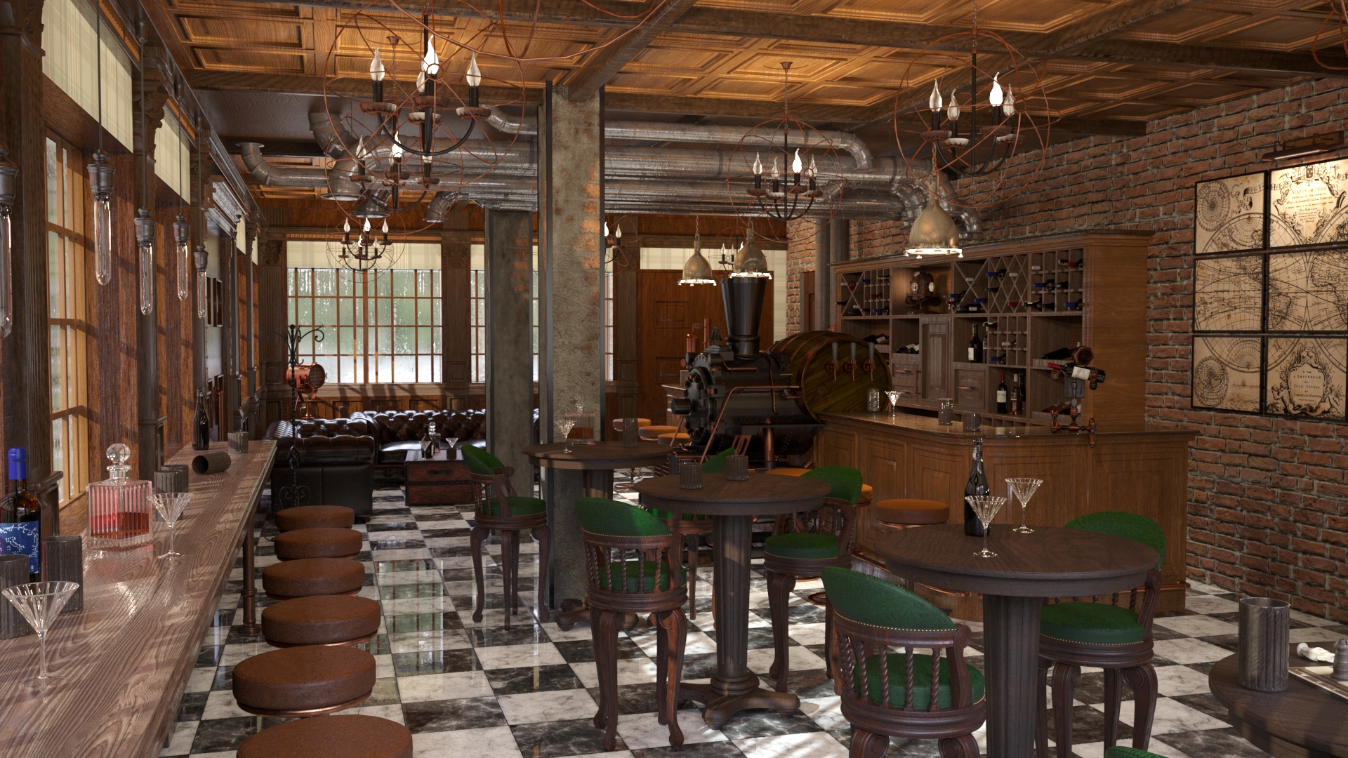 Столы и стулья с зеленой обивкой скачены с 3ддд вместе с их родными текстурами, вся остальная мебель смоделена самостоятельно, соответственно текстура наложена тоже самостоятельно. так в чем разница? Я согласна, что выглядит мультяшно, но я не думаю, что это произошло из-за текстур. они довольно сложные. к тому же, на интерактивных рендерах отдельные объекты выглядели очень даже хорошо, а в совокупии получилось это...