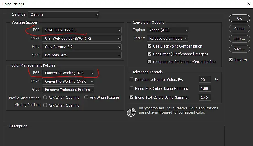 Попробуйте так, должно помочь, всякие плагины обычно работают в sRGB, да даже простой просмотрщик может сильно искажать цвета, если будет выбран другой профиль.