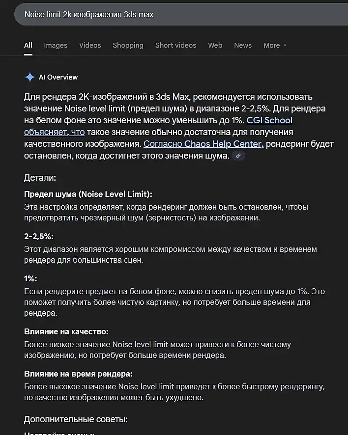 Ставлю как советуют для 2к изображения Noise Limit 1-2% и выходит вот такая зернистость почему-то. Рендерилось 4 часа это изображение, а какбудто 10минут