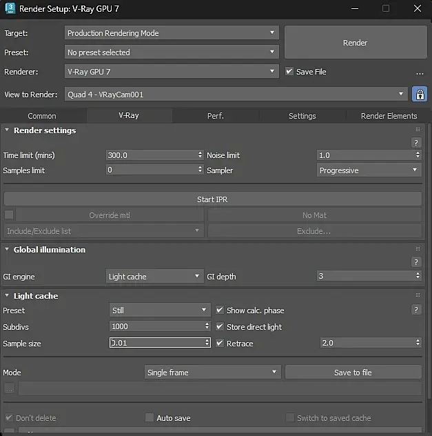 waeefaawefaew, у вирей нет лимита по проценту шума, у вирея предел шума, а то, что вы нашли в гугле - это параметры процента шума для короны, вирею надо ставить предел шума для превью 0.1 хотя бы, для финала 0.01 и убирать лимит по времени