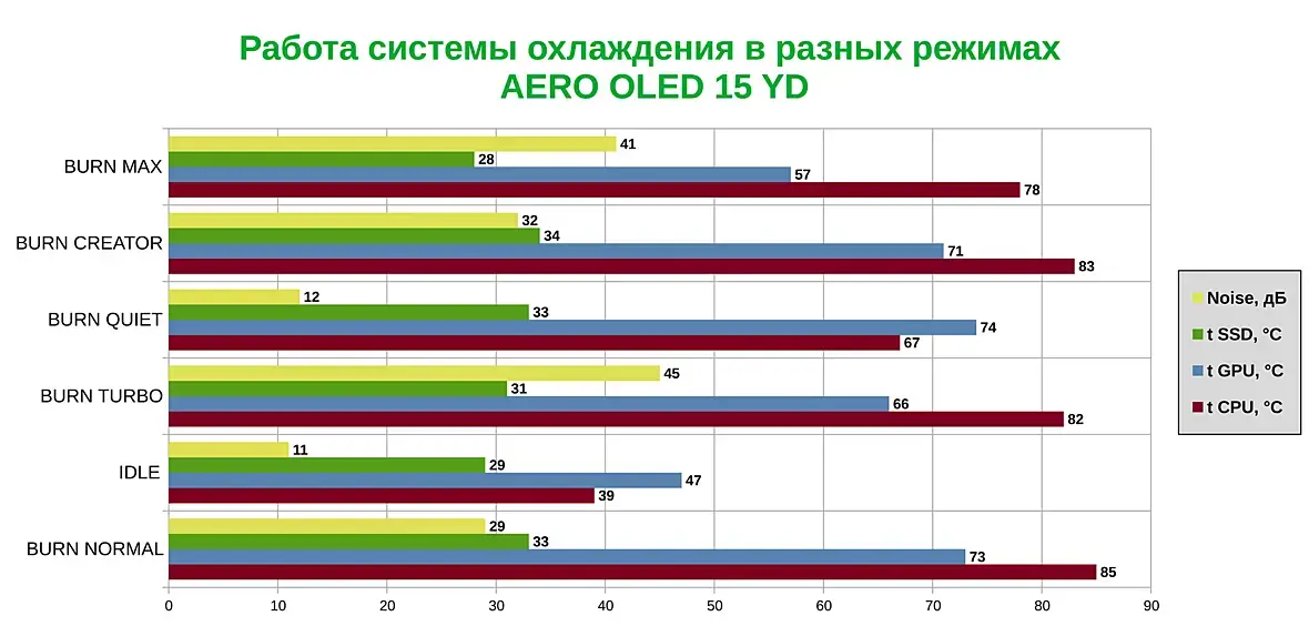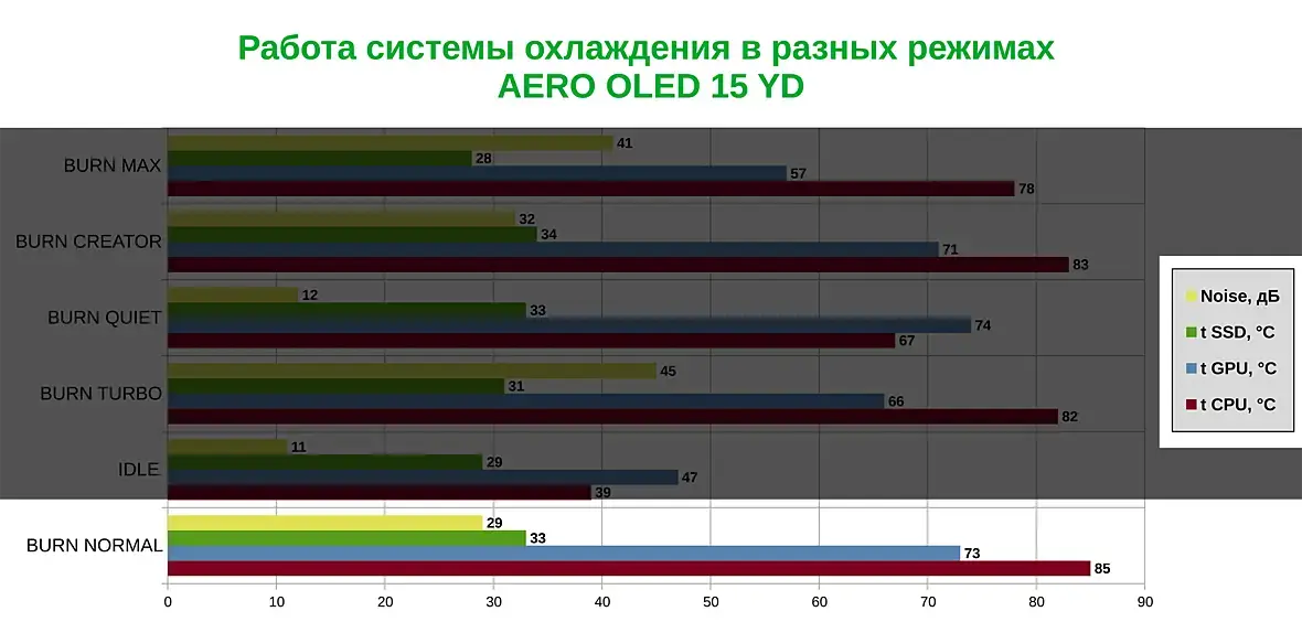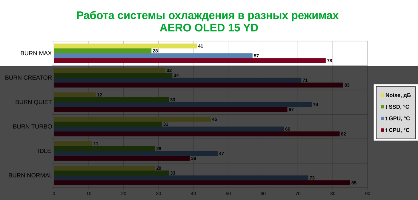 Замеры температур для CPU/GPU - уже не делал. Так как я думаю, что из прошлых серий - понятно, что у ноутбука все отлично с охлаждением.