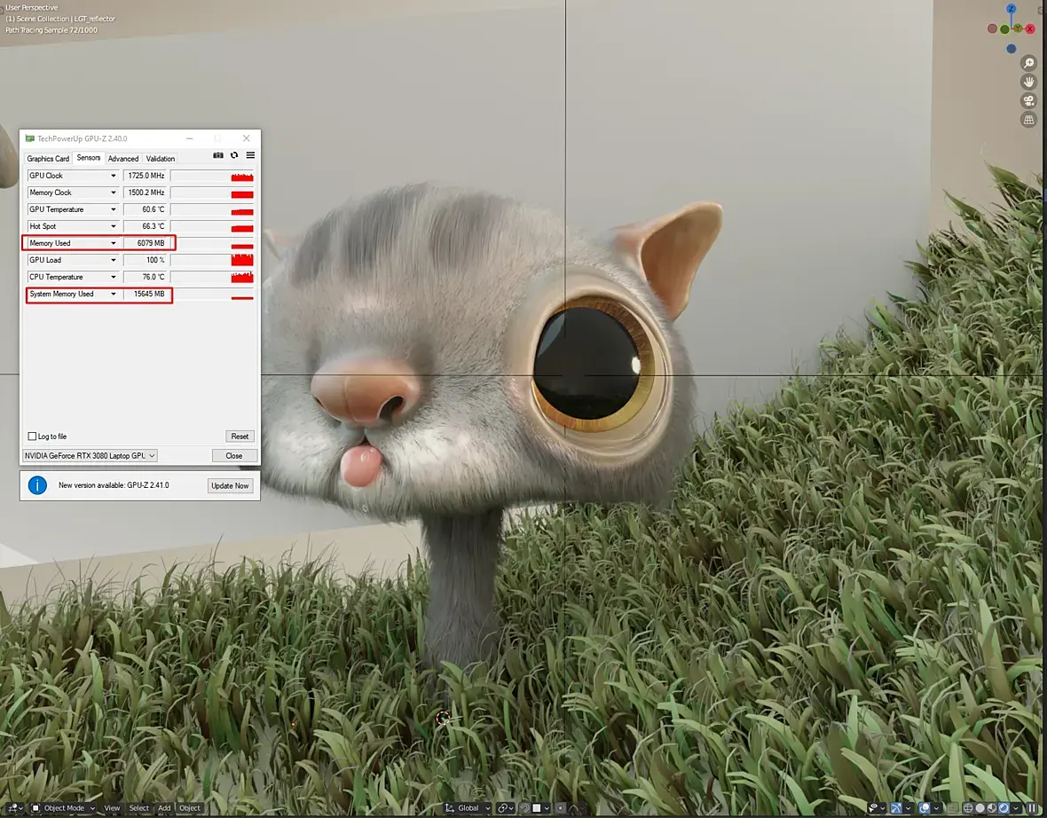 Cцена скушала почти 15Гб видеопамяти =) Это показатель для тех, кто спрашивал - зачем мне GPU c 16Гб.