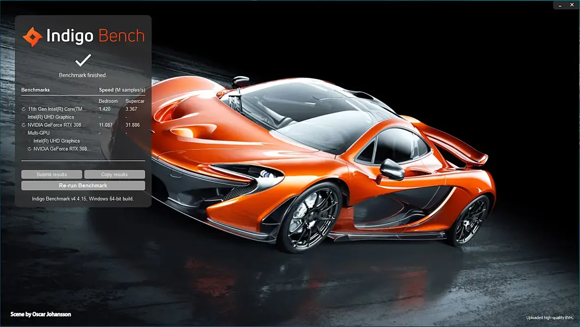 Это шестая серия о моем ноутбуке GIGABYTE AERO 15 OLED YD и в этой серии - я тестирую Indigo Bench для Indigo Renderer в CPU/GPU-режимах на GPU - NVIDIA GeForce RTX 3080 Laptop c 16Гб видео-памяти и CPU - i9-11980HK.