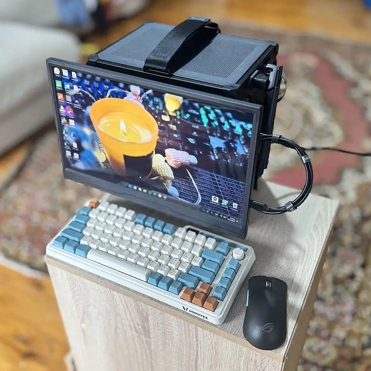 Ну судя по всему вам и дома не разгуляться, для работы выдали только тумбочку. Тут уж приходится извращаться. А так по компу зачёт, не оскудеет земля русская Кулибиными)