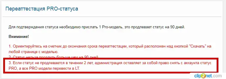 Добрый день всем! У меня осталось 19 дней до ограничения Pro статуса. Я почти не волнуюсь по этому поводу, так как последние 2 года скачал от силы моделей 10-15. То есть необходимо бы понять что будет дальше с моим аккаунтом и самое главное - с авторскими отчислениями, если - теоретически я буду в дальнейшем выкладывать только LT. Я думаю, что я тут такой не один, поэтому хочется получить подробный ответ администрации и по поводу следующих размышлений: