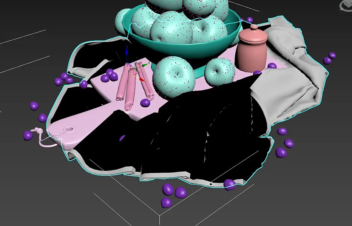 Для загрузки модели на сайт, экспортирую модель в obj. Из-за перегибов, одновременно видны обе её стороны. Так как ткань не имеет толщины, одна сторона получается чёрная (с нормалями в другую сторону).