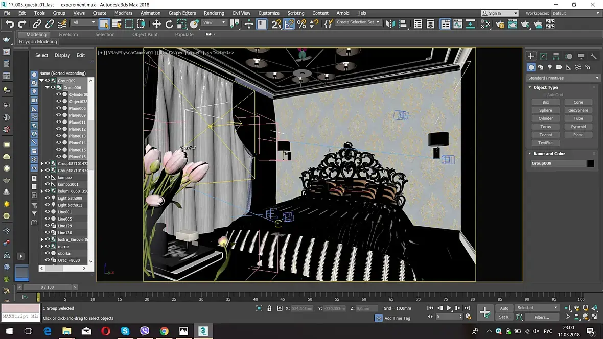 Всем привет! Установила 2018-й макс, никак не могу разобраться с настройками отображения. Вот так отображает сцену камера. В перспективе показывает нормально. Подскажите, какие настройки, может, покрутить, чтобы адекватно отображалось? Спасибо.