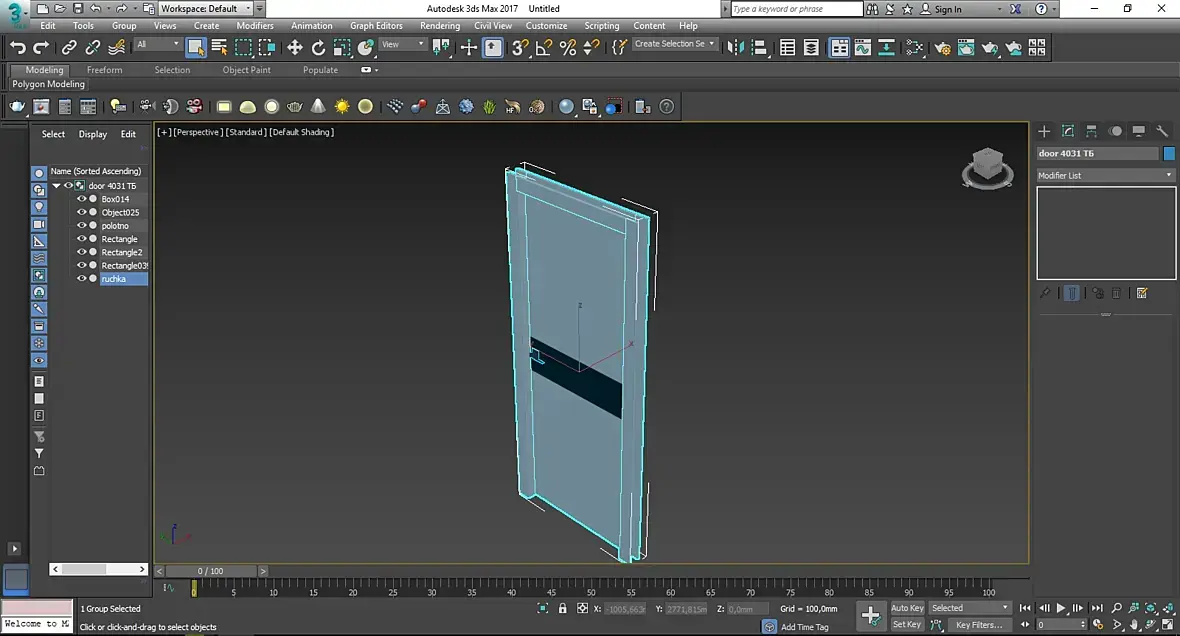 Приветствую. Подскажите пожалуста. Почему в модели межкомнатной двери не получается выделить только ручку, например, или только коробку, а выделяется при этом всё и из-за этого не могу применить Editable Poly?
