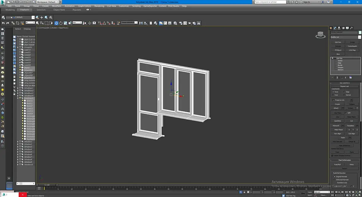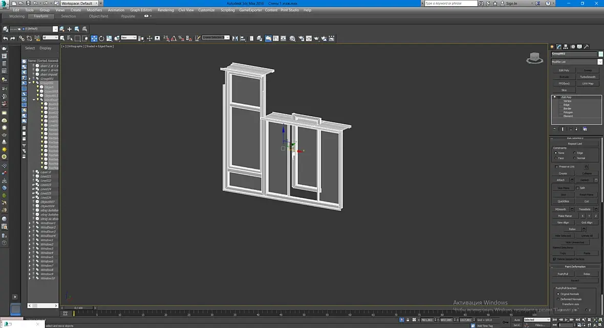 Nayana_Juliana, а резет-то помог? Если да, то лучше кинуть его на модельку окна, а потом уже мерджить её в другие сцены.