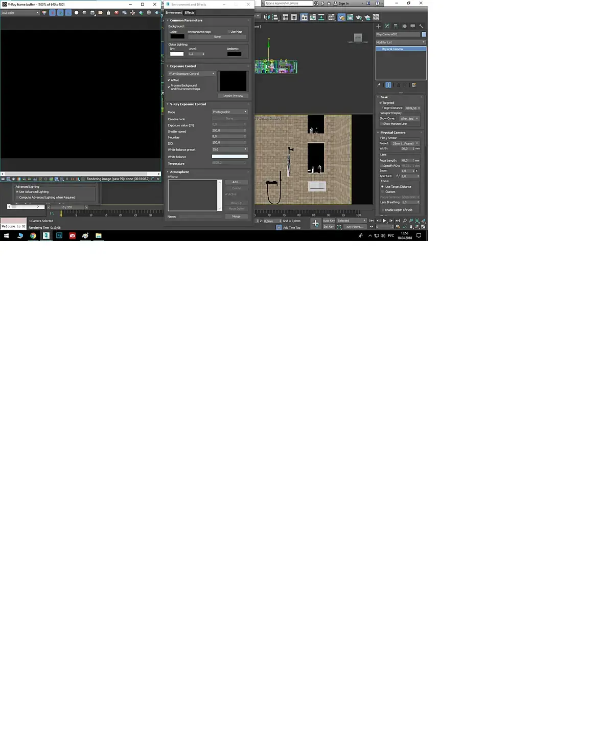 Опять привет. Финальная картинка рендера - чёрная, при том что в окне Environment and Effects, вызываемым кнпкой 8, перебрал все варианты в Exposure Control, а также увеличивал глобальное освещение. Подскажите почему?