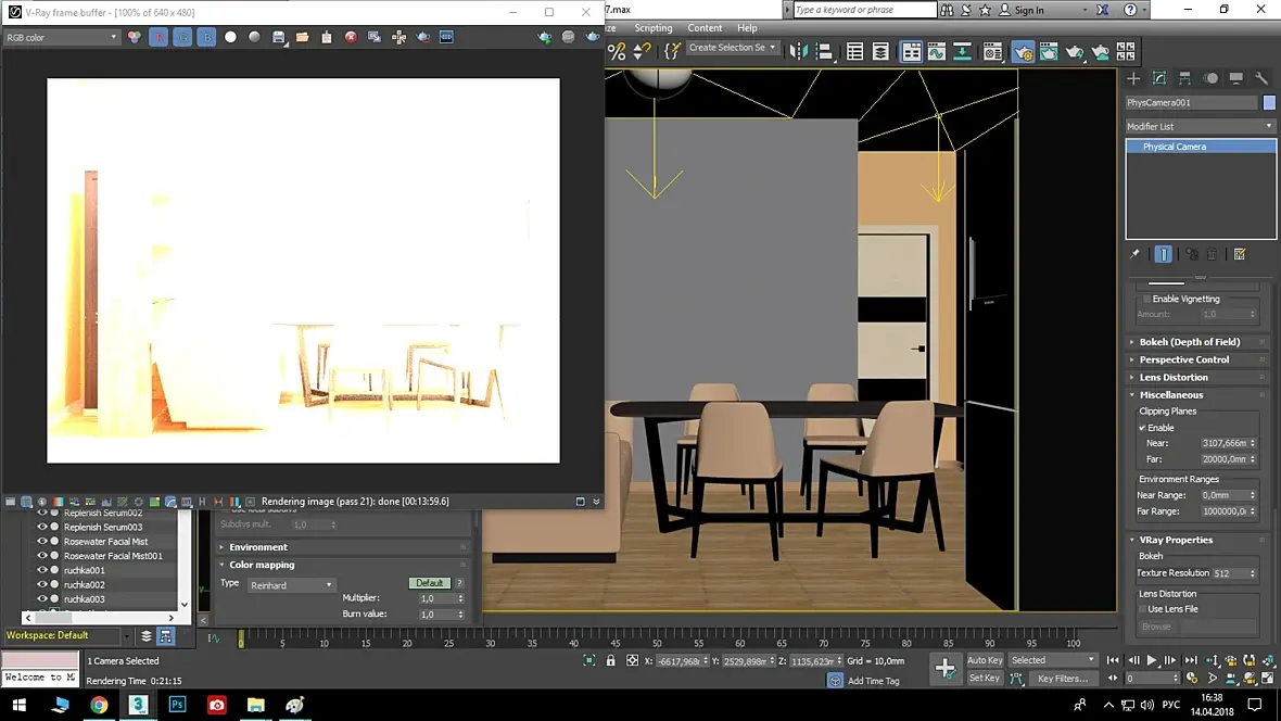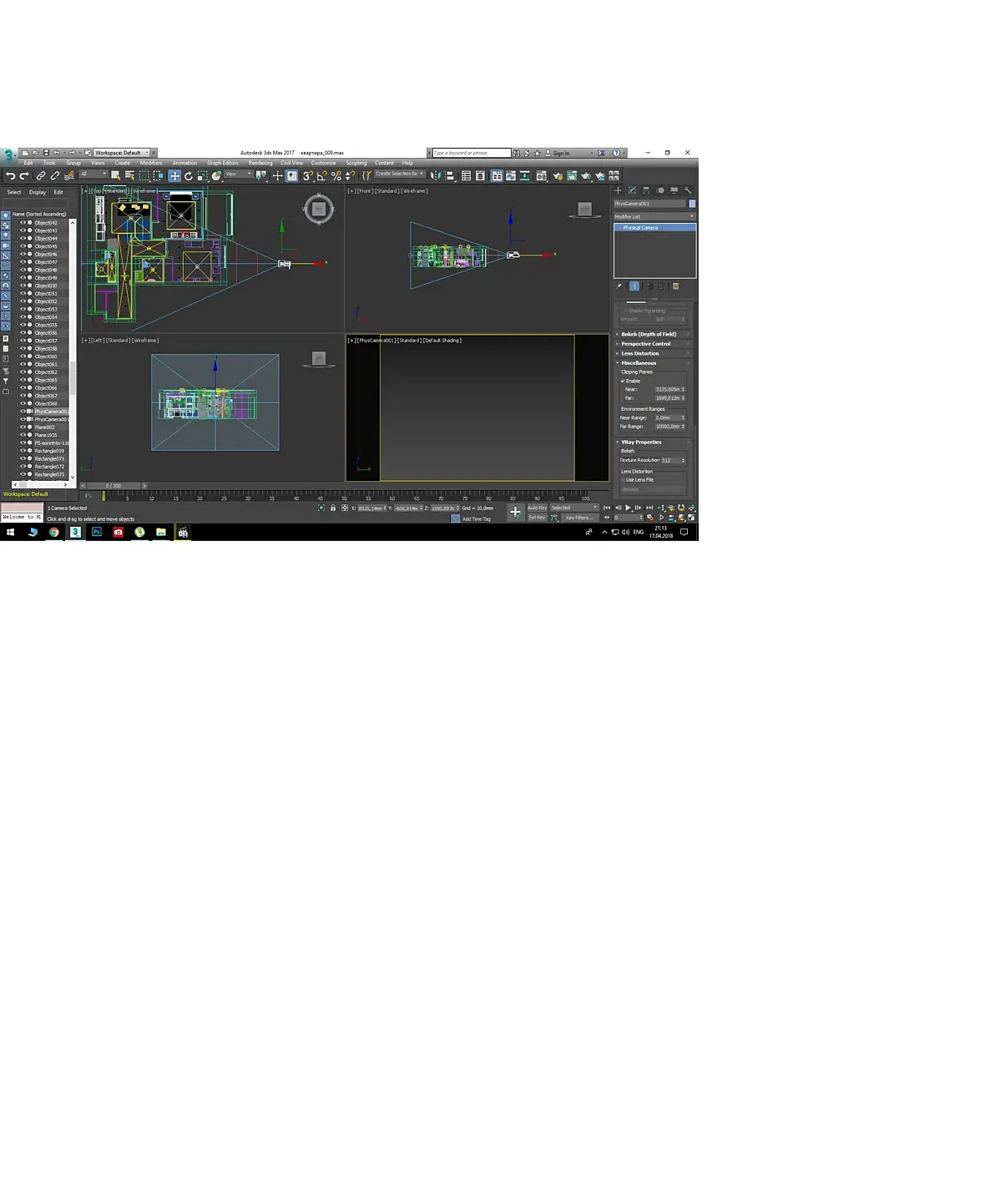 Привет. Имею симбиоз 3D Max 2017 и V-Ray 3.60.03. Почему-то не работает вид из камеры, когда в настройках камеры в Clipping Planes поставлена галочка на Enable, как на скрине: