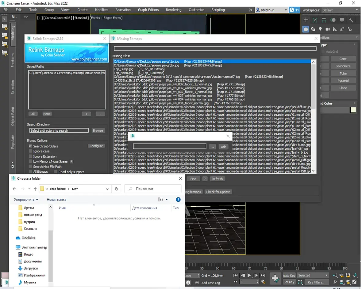 Добрый день, помогите разобраться! Почему скрипт Relinc Bitmaps показывает много тексур к которым не нашёл путь, я обновляю (Refresh ) ничего не меняется. Когда указываю путь с текстурами в левом окне он их не видит.