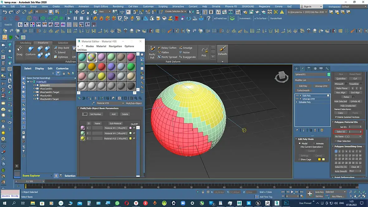 или по другому вопрос. Как выделить полигоны в объекте по одному из материалов в мультиматериале. Например эти полигоны или подобъекты этого материала мне нужно удалить. Модель единая эдит поли.