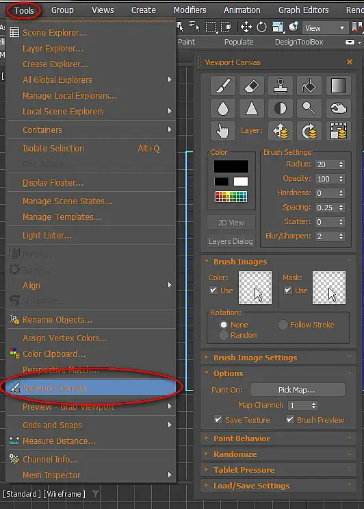 А где выбирается параметр - на чем рисовать? Если ткнуть из менюшки вертексы или полигоны, то кисть вообще не рисует.