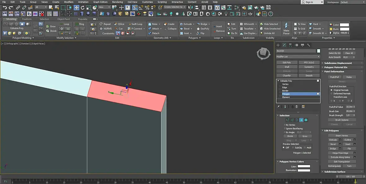 Но геометрия над полигоном ненужная остается, а мне нужно получить вырез как на скриншоте ниже. Но только путем не выдавливания вверх левой части, а вдавливания правой части вниз.