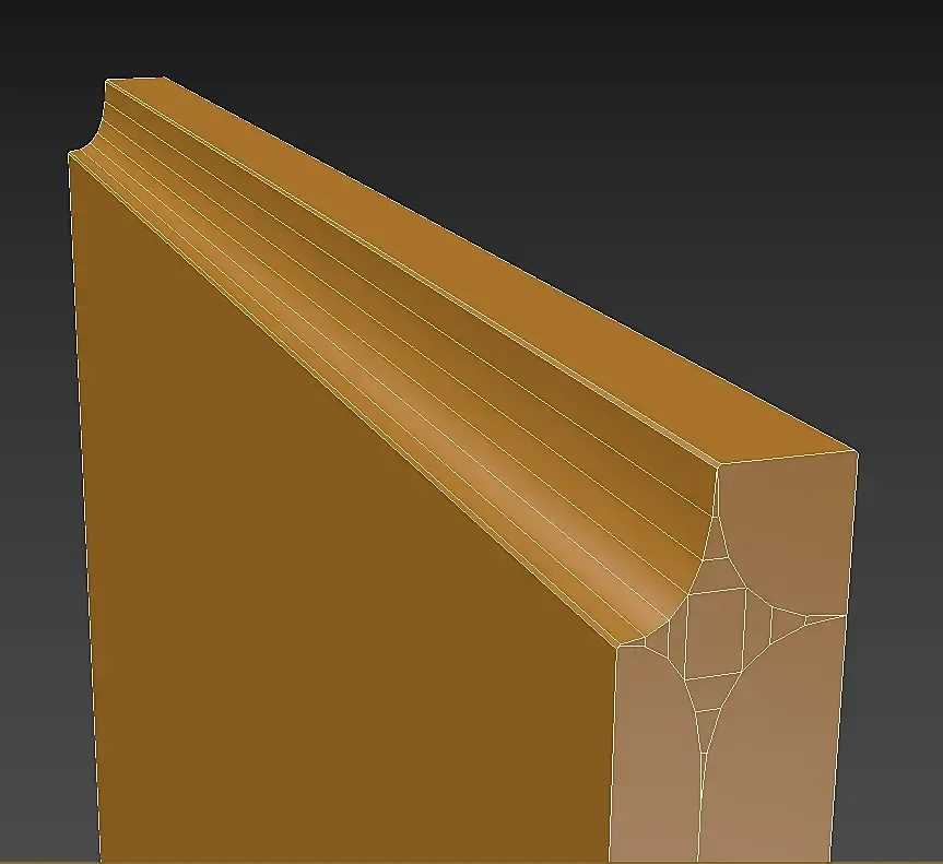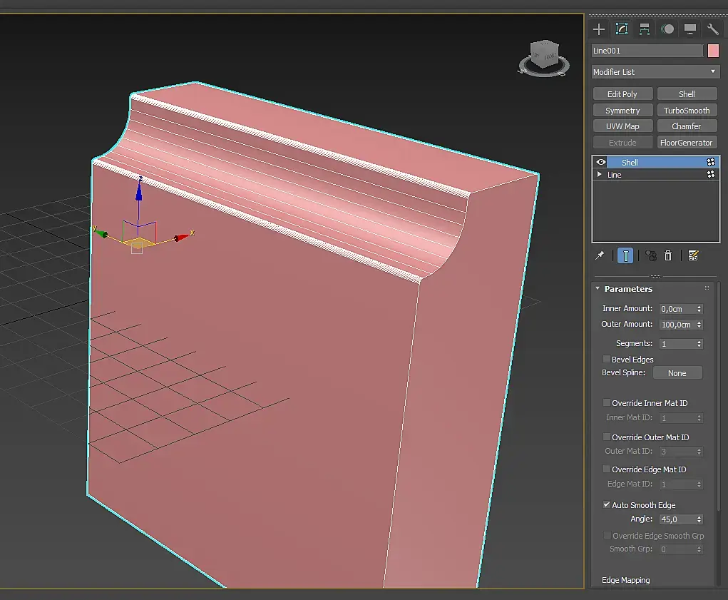 Создаем сплайн, экструдим, переводим в полигональный режим, выделенное чампферим.