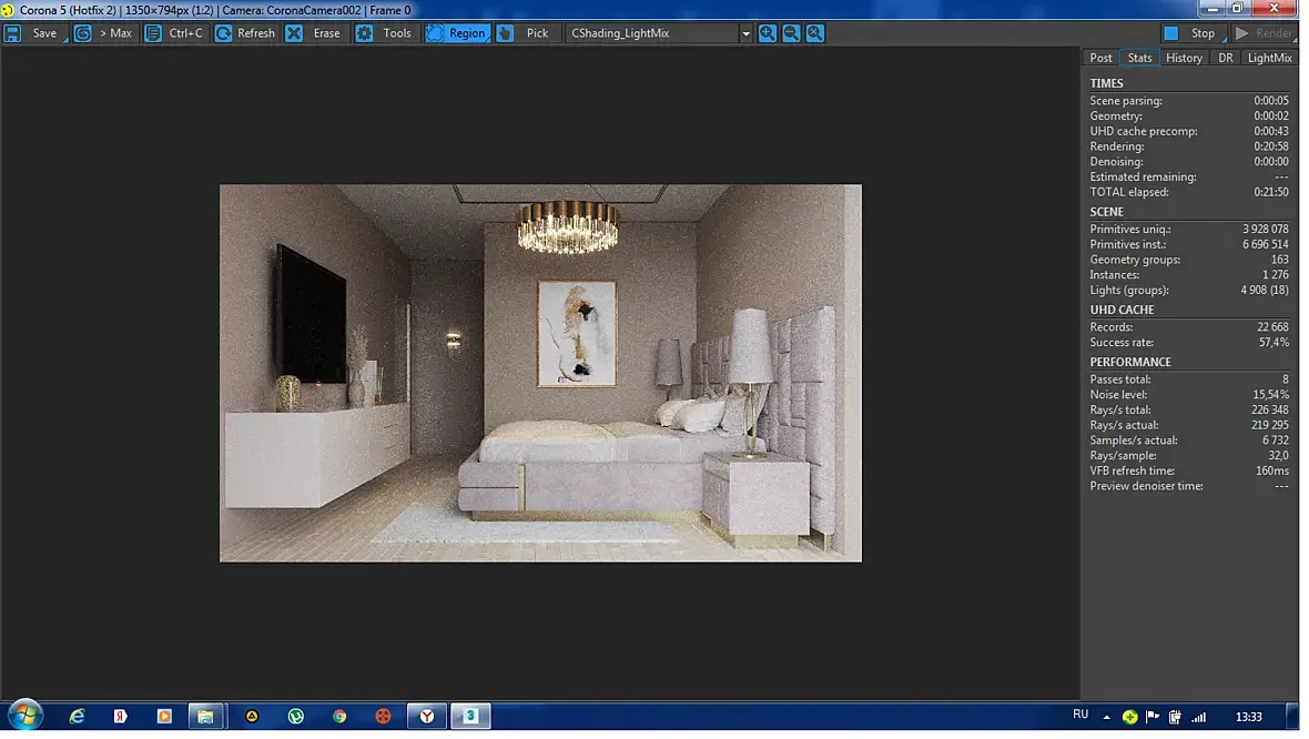 Финальный рендер прикрепите. Сейчас всё мелко и шумно. Чтобы не ждать советов, можно почитать что пишут под другими ВИПами. В принципе, ответы и советы будут более-менее совпадать.
