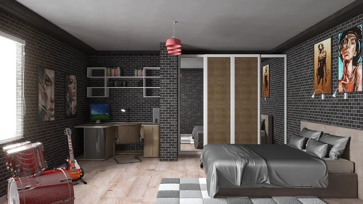 Начните с воссоздания какого-нибудь реального фото интерьера с нормальным дизайном. Пробуйте его повторить и одновременно пытайтесь изучать все нюансы .Например, Как ложится светотень , как ведут себя материалы, как избавляться от косяков типо тайлинга и тд. После уже можно думать о таком явлении как портфолио. Ибо конкуренция нынче высока, а с таким качеством только хорошим друзьям и знакомым,а так же маминым подружкам делать, за чаек.