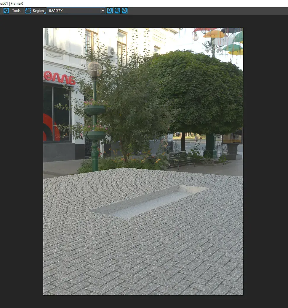 Привет всем ) Помогите вместить басейн в среду, чтобы он не висел в воздухе при рендере (