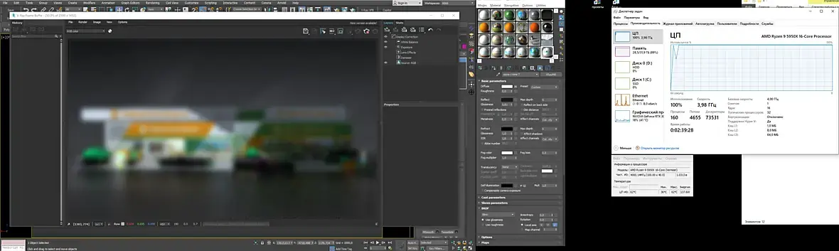 проблема этих процессоров не в том чем их охлаждать при рендере а в том чем их охлаждать при открытии гугл-хрома или в максе когда открываешь сцены на 20лямов и потом работаешь в ней, вот тогда температура скачет под 90гр. и очень странную вещь заметил не важно сколько в сцене лямов на рендере температура всегда от 63 до 66гр максимум даже если в сцене 80лямов! у меня водянка "Fractal design celsius s36", мать аурус мастер B550, проц в стоке, а у вас на скрине в рендере проц сам себя гонит на 4к, очень интересно как вы это сделали? он у вас в стоке или вы его разогнали до 4к, или это от того что движок врей, потому что в короне у меня всегда от 3800 до 3900 потолок??!!хотелось бы узнать какая температура вашего проца при стандартных работах... запустите прогу core temp и поработайте несколько часов и она вам покажет максимальную температуру... вот тогда интересно как этот ваш кулер "id-cooling se-226-xt black" охлаждает... очень интересно
