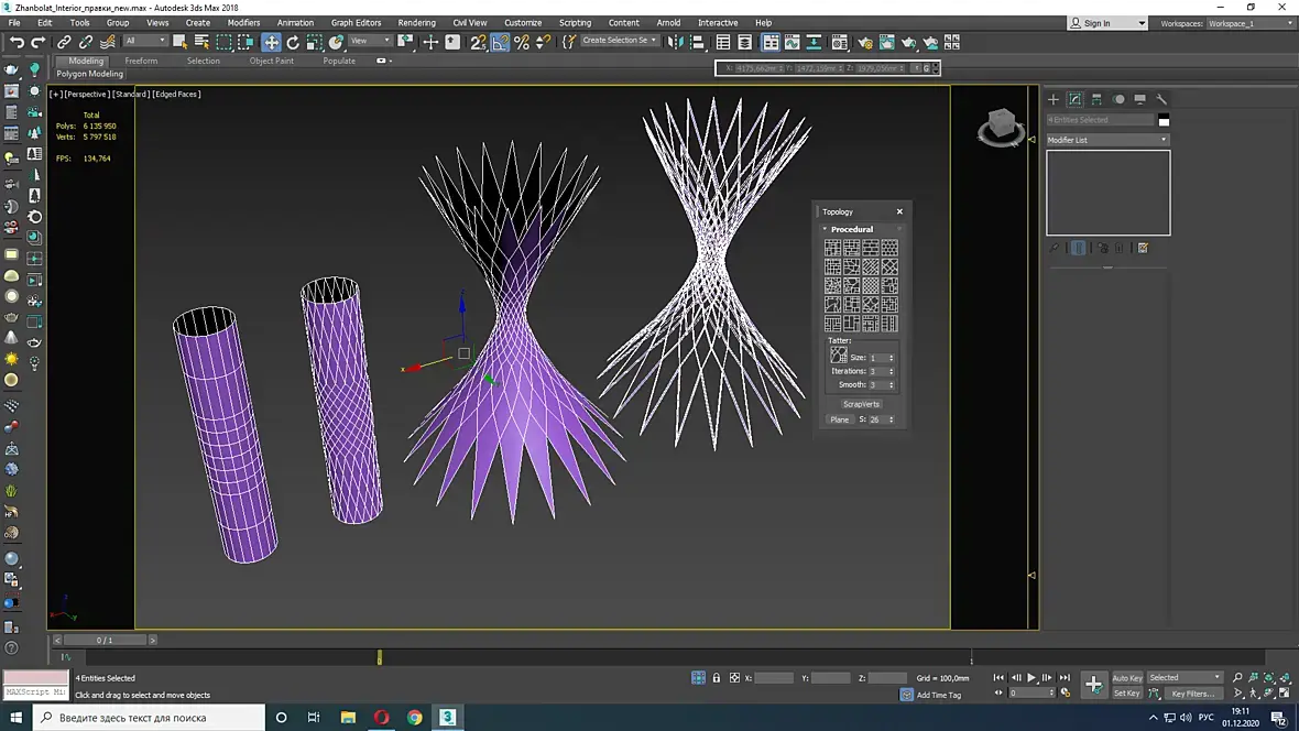 Создаете цилиндр, закручиваете, из вертикальных эджей делаете сплайны, зеркалите, и назначаете толщину, 1 минута работы