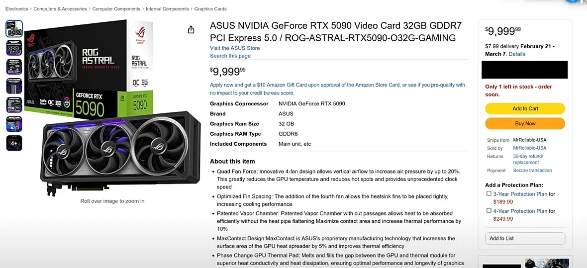 ASUS RTX 5090 Astral на Амазоне (Она одна оставалась и ее уже купили)