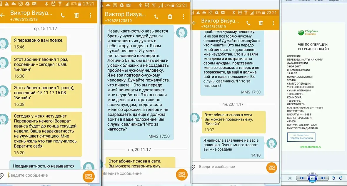 а. Деньги будут в течении текущей недели. Разговаривать я с данной девушкой уже не хочу. Писала хамские СМС-ки с угрозами моей матери и.т.д адеквата мало в общем.