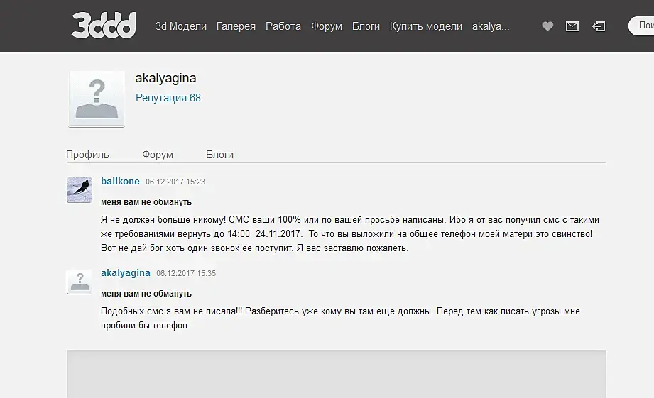 Согласен. Кто писал эти смс дело второстепенное. Кинул на деньги - получил подобные смс, ну .. могло быть и хуже. А кидалово на деньги очевидное, и если бы не огласка денег бы не вернул. Так что Виктор balikone должен быть закреплен в черном списке, пусть не навсегда, но как минимум на год.