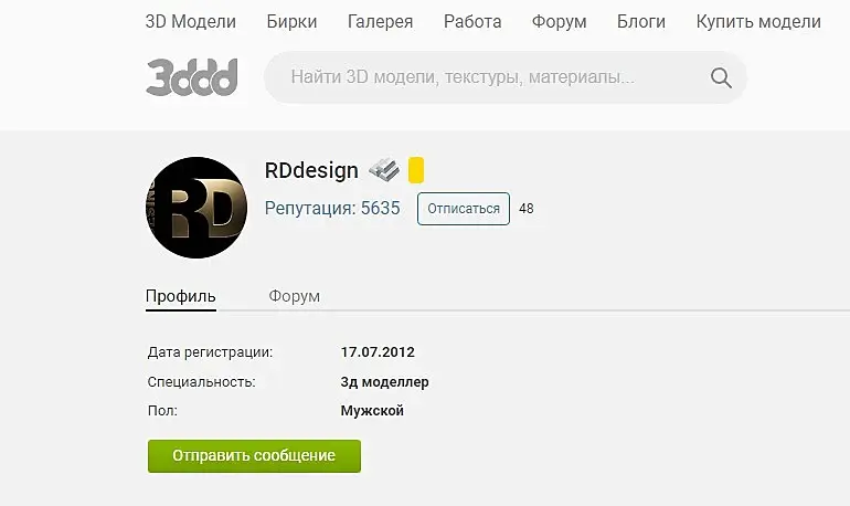 Всем привет. Хочу предостеречь всех . От такого исполнителя моделера. Оно предлагает услуги. Работу проплатил полностью. потому как сумма смешная. но Оно просрочила на две недели работу. оно пела клялась обещаняеми каждый день. в конечном этоги на десятый раз устал от обещаний и также попросил вернуть деньги так как работа небыла начета . потому как на мою прозьбу отправить скрины сделоного нечего не увидел. оно даже не смогло вернуть нещашные копейки за работу. не прикаких условиях не соглашайтес на сотрудничество ОНО очень не порядочное. стоимость его слова 50.е.