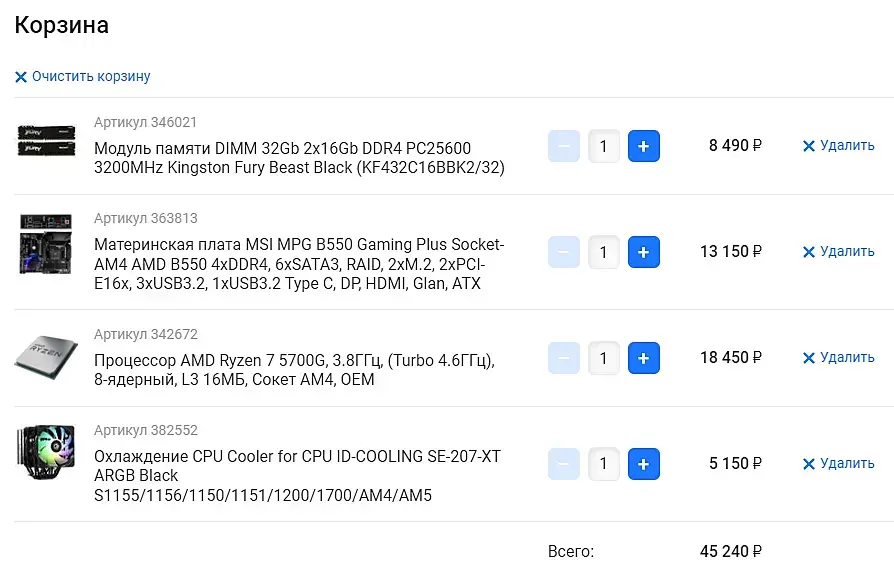 Можно в 40 тыр уложится, если взять проц 5600G вместо 5700G Чуть меньше ядер, но тоже сойдёт, если вам не рендерить.